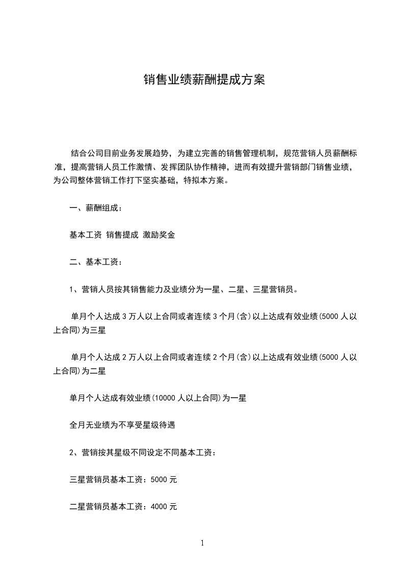 一星营销员提成标准:2.0%