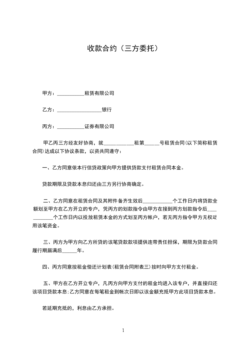 七、本协议一式三份,甲乙双方,乙方开户银行(付款银行)各执一份。