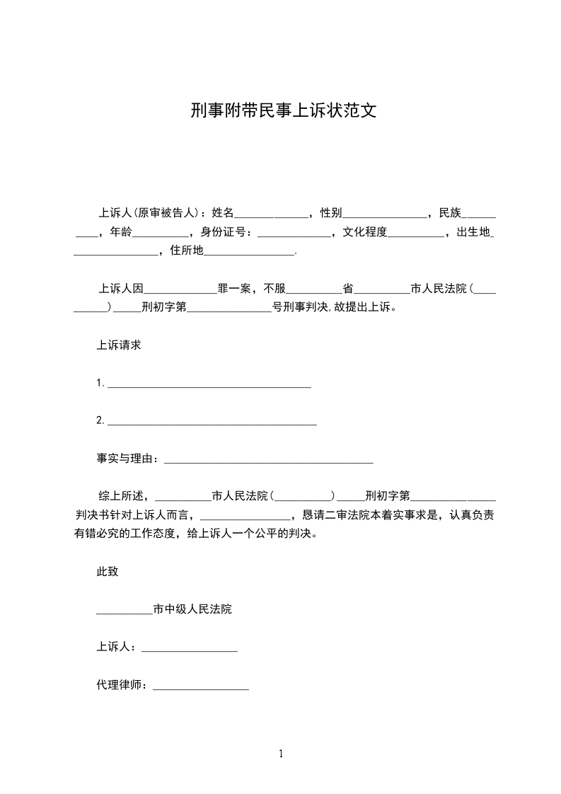 上诉人(原审被告人):姓名_____________,性别_______________,民族__________,年龄__________,身份证号:_____________,文化程度__________,出生地________________,住所地________________.