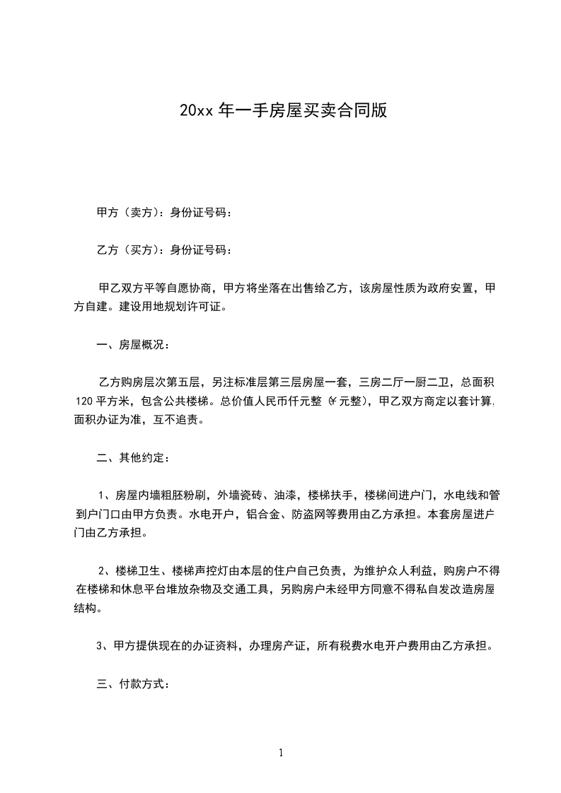 乙方购房层次第五层,另注标准层第三层房屋一套,三房二厅一厨二卫,总面积120平方米,包含公共楼梯。总价值人民币仟元整(¥元整),甲乙双方商定以套计算,面积办证为准,互不追责。