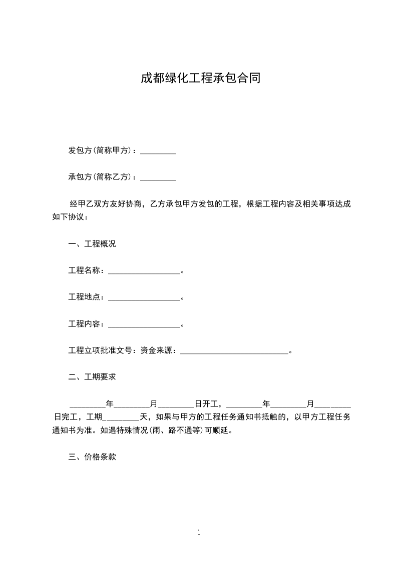 _________年_________月_________日开工,_________年_________月_________日完工,工期_________天,如果与甲方的工程任务通知书抵触的,以甲方工程任务通知书为准。如遇特殊情况(雨、路不通等)可顺延。