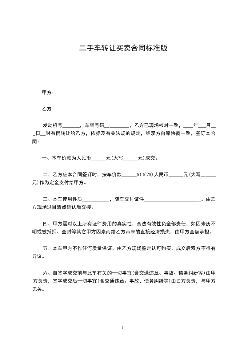 发动机号_______,车架号码__________,乙方已现场核对一致,____年___月___日__时有偿转让给乙方,依据及有关法规的规定,经双方自愿协商一致,签订本合同: