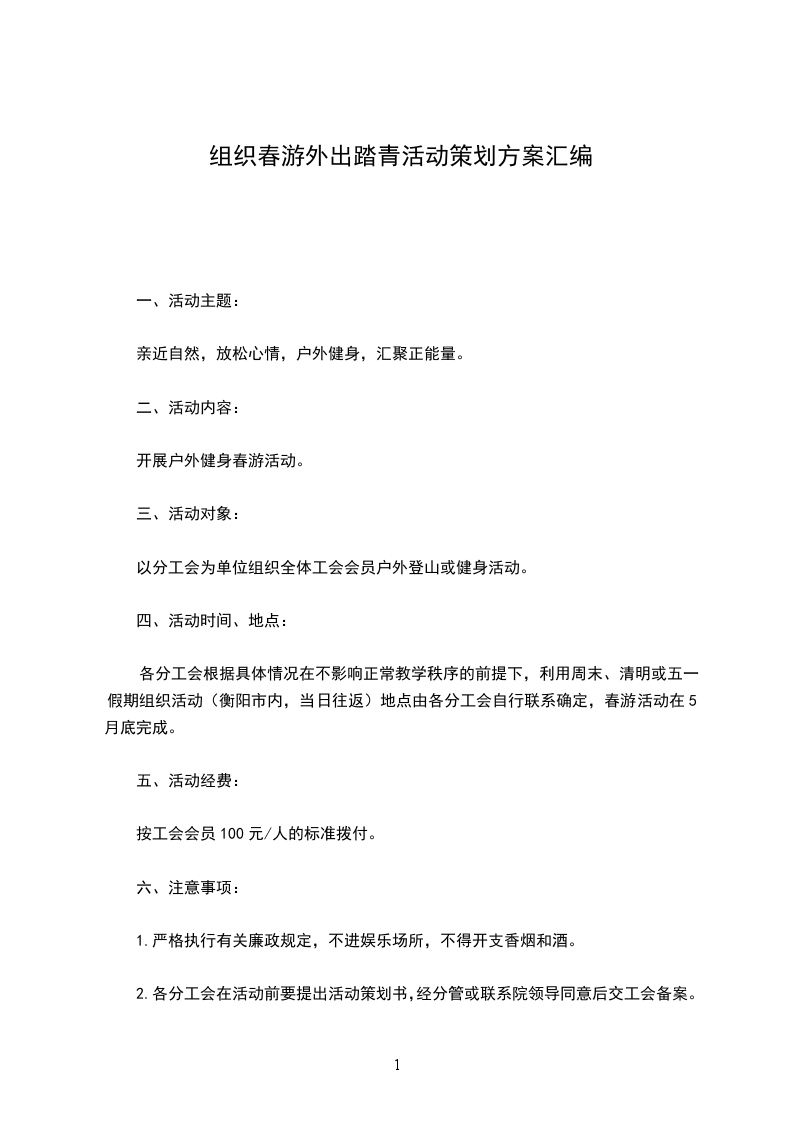 各分工会根据具体情况在不影响正常教学秩序的前提下,利用周末、清明或五一假期组织活动(衡阳市内,当日往返)地点由各分工会自行联系确定,春游活动在5月底完成。