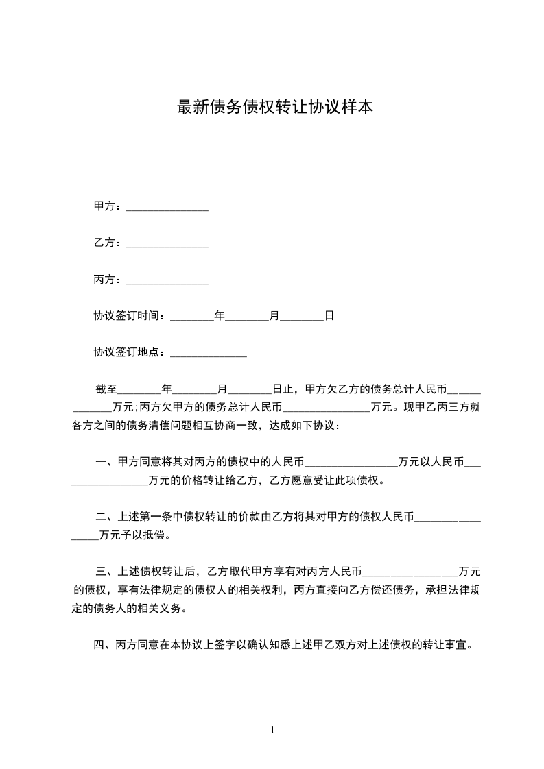 经平等自愿协商,甲、乙、丙、丁四方就债权债务转让事宜达成如下协议: