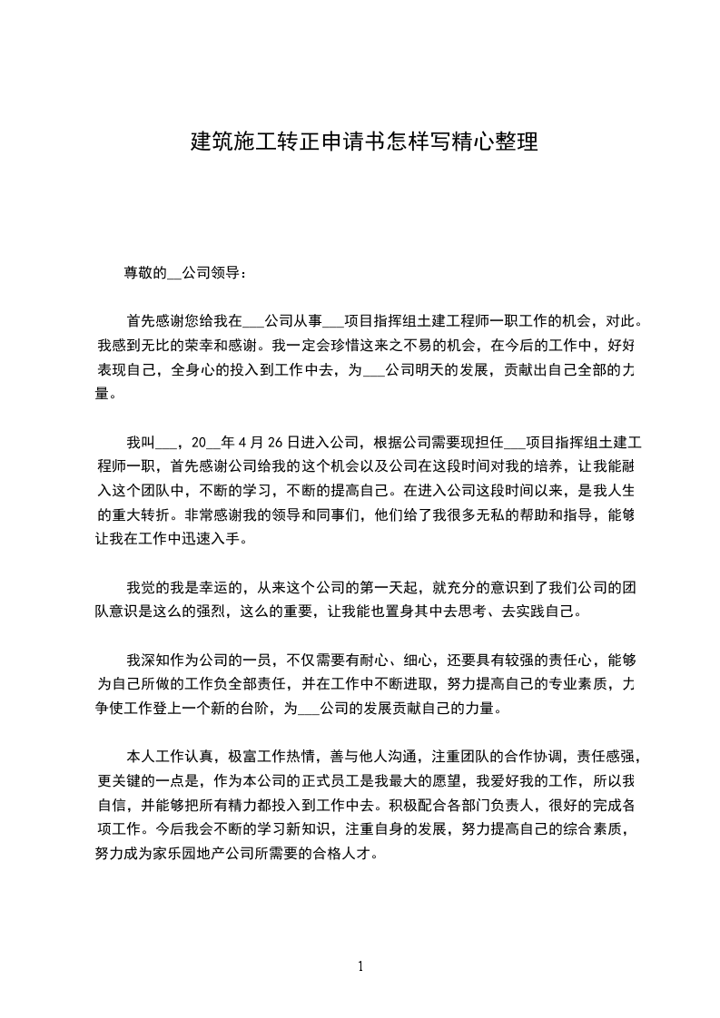 首先感谢您给我在___公司从事___项目指挥组土建工程师一职工作的机会,对此。我感到无比的荣幸和感谢。我一定会珍惜这来之不易的机会,在今后的工作中,好好表现自己,全身心的投入到工作中去,为___公司明天的发展,贡献出自己全部的力量。