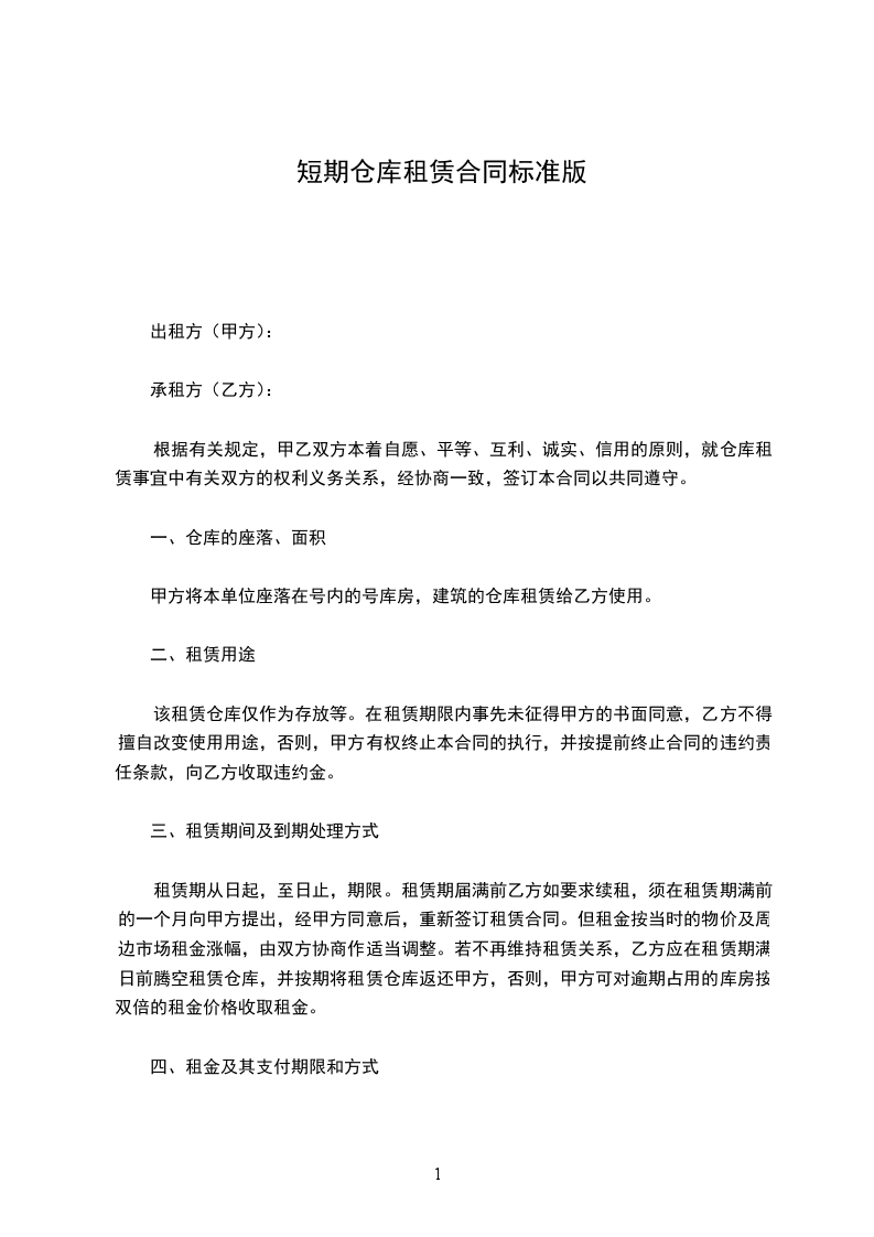 1、甲方应按照合同约定,按期将仓库交付乙方使用。