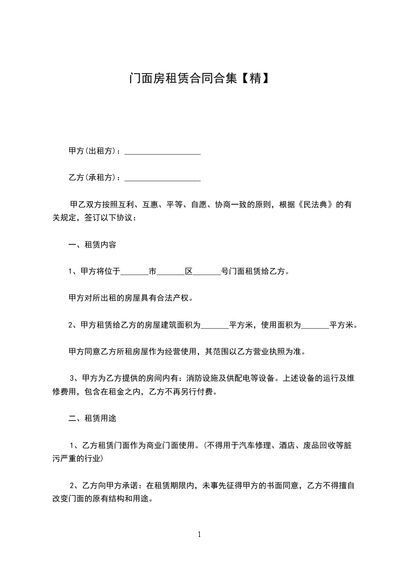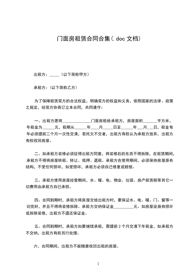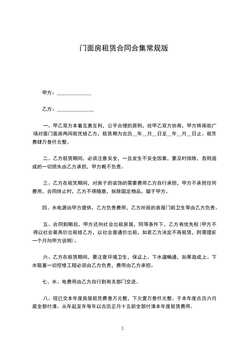 出租人(下称甲方)__________