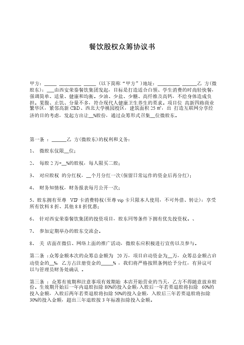 6.2本众筹协议范本经双方签字盖章后生效,一式两份,双方各执壹份,具有同等法律效力。