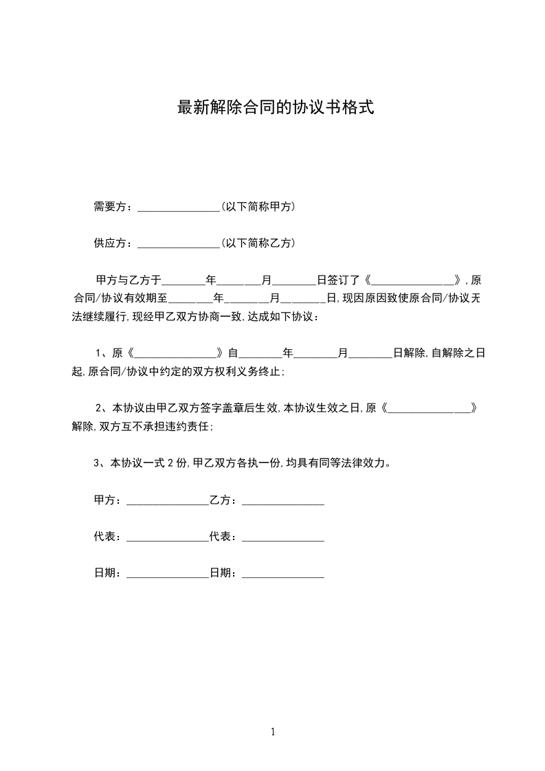 一、甲乙双方一致同意于________年____月____日提前终止双方于________年____月____日签订的《房屋租赁合同》。