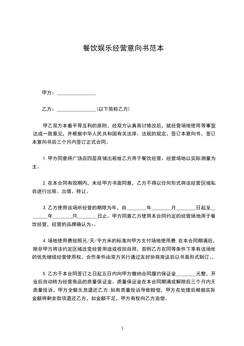 甲乙双方本着平等互利的原则,经双方认真商讨修改后,就经营场地使用等事宜达成一致意见,并根据中华人民共和国有关法律、法规的规定,签订本意向书,签订本意向书后三个月内签订正式合同。