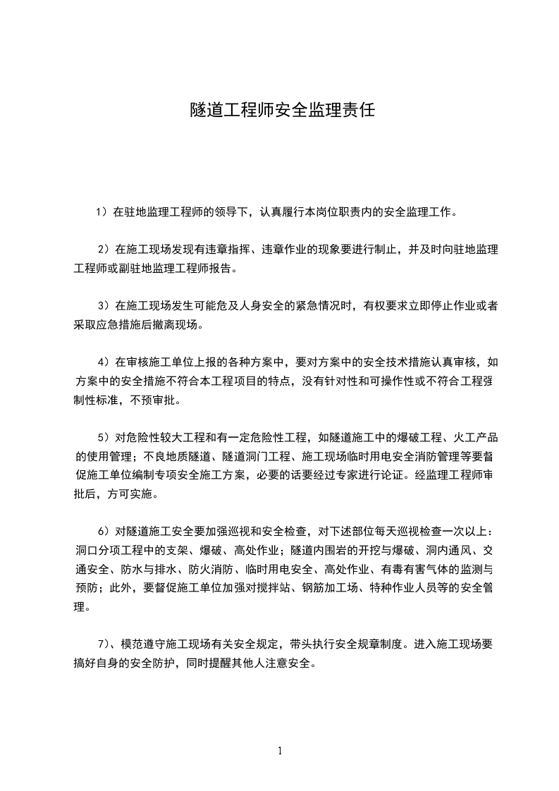 1)在驻地监理工程师的领导下,认真履行本岗位职责内的安全监理工作。