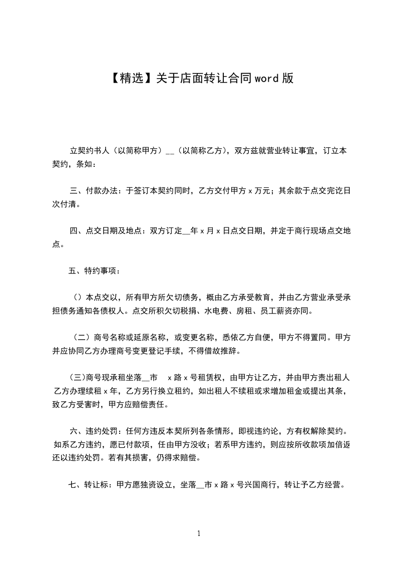 七、转让标:甲方愿独资设立,坐落__市x路x号兴国商行,转让予乙方经营。