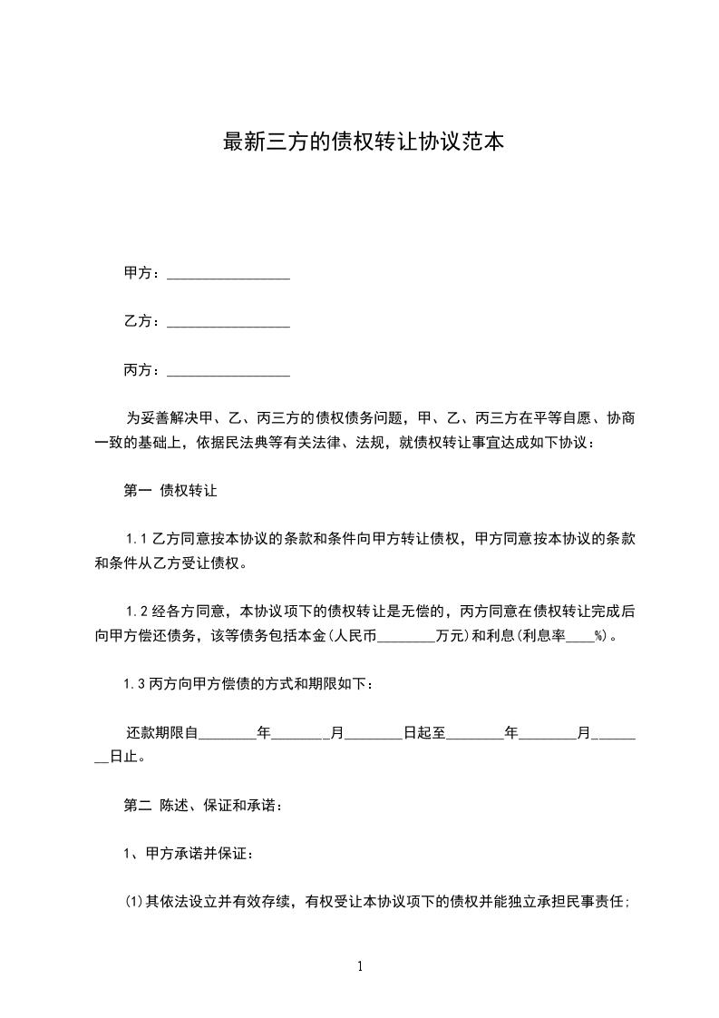 为妥善解决甲、乙、丙三方的债权债务问题,甲、乙、丙三方在平等自愿、协商一致的基础上,依据民法典等有关法律、法规,就债权转让事宜达成如下协议: