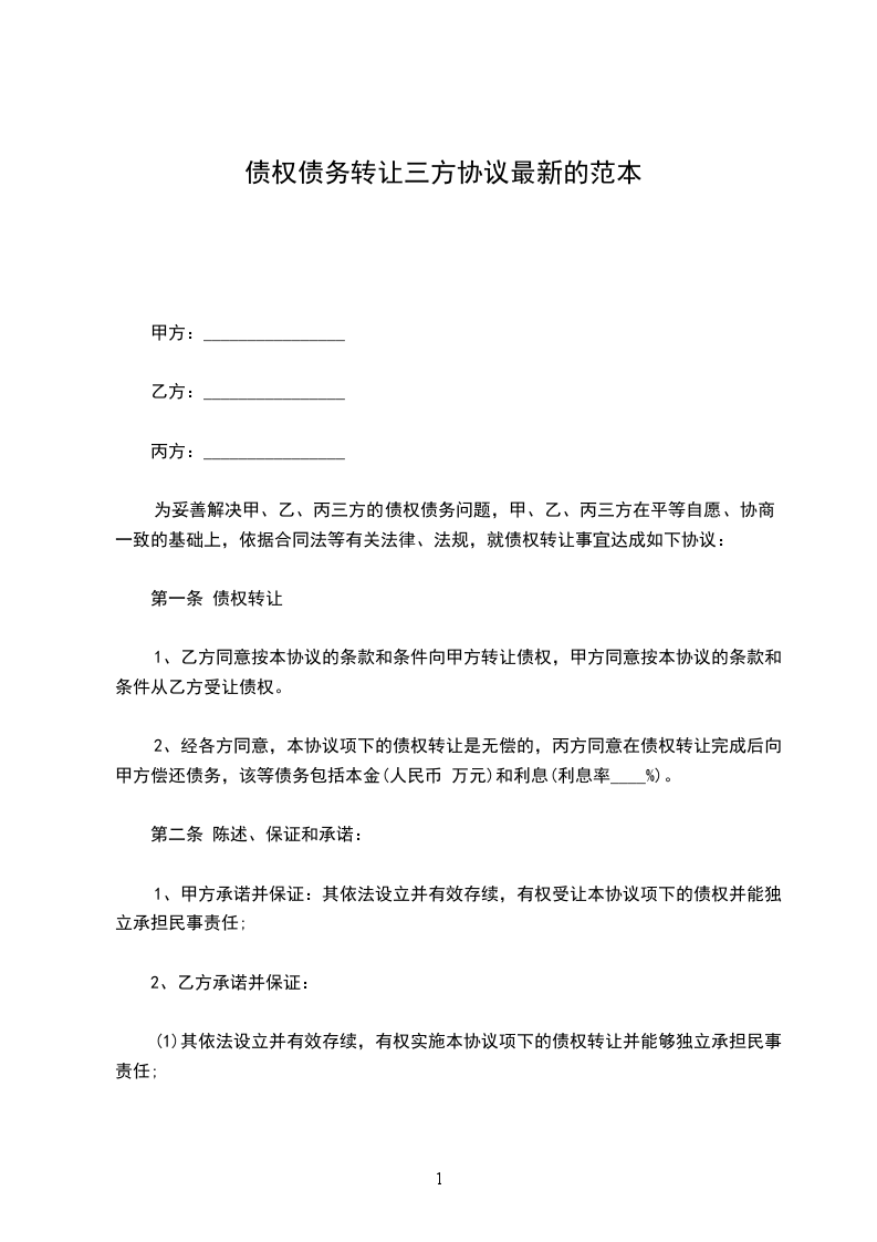 2、经各方同意,本协议项下的债权转让是无偿的,丙方同意在债权转让完成后向甲方偿还债务,该等债务包括本金(人民币 万元)和利息(利息率____%)。