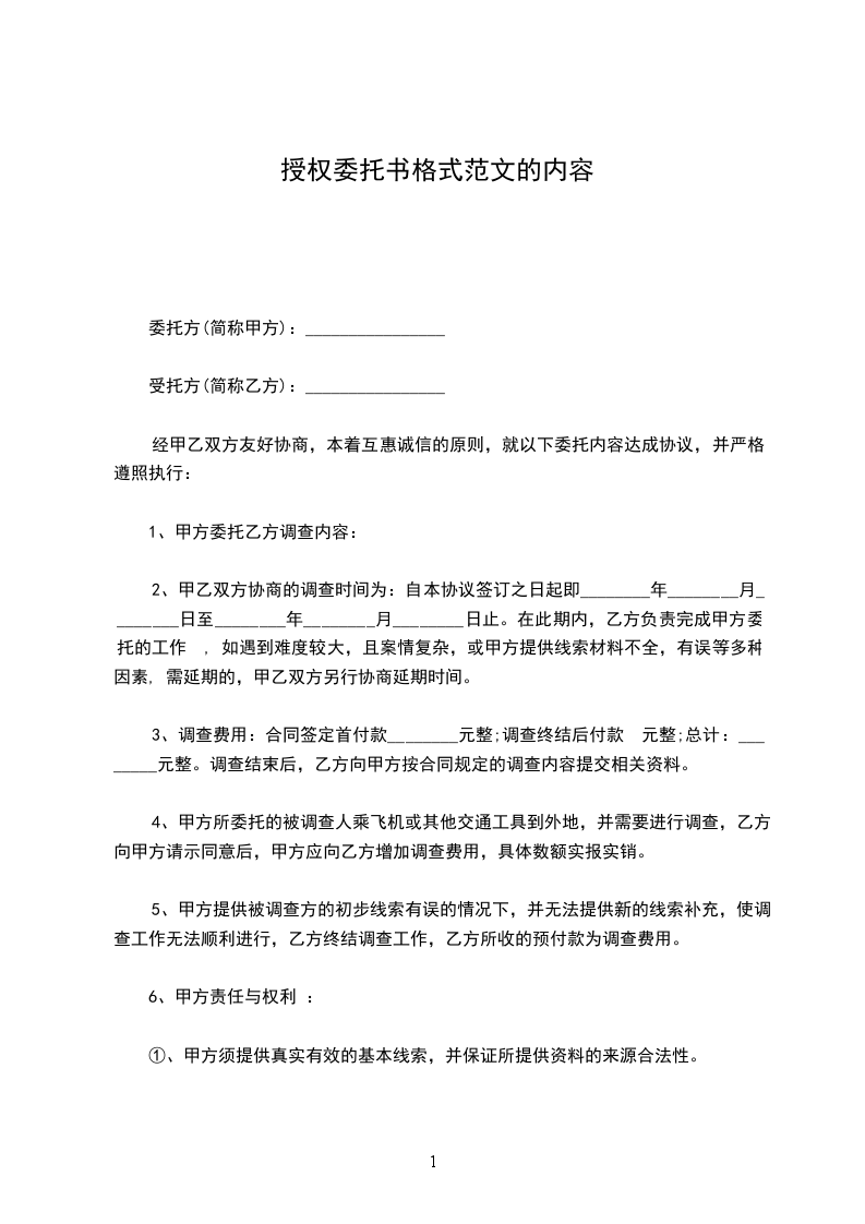 1、甲方委托乙方调查内容: