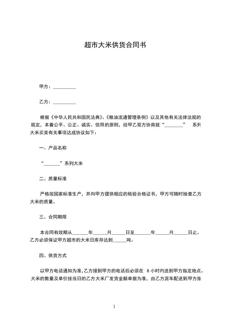 超市(乙方):__________________