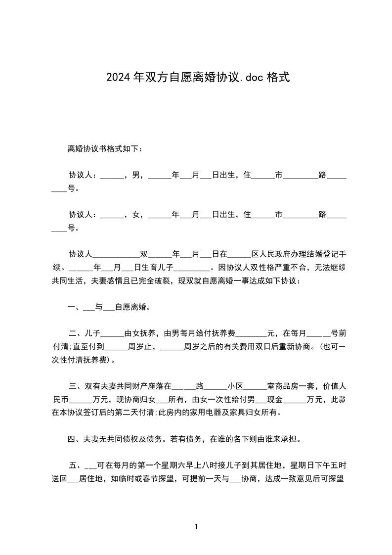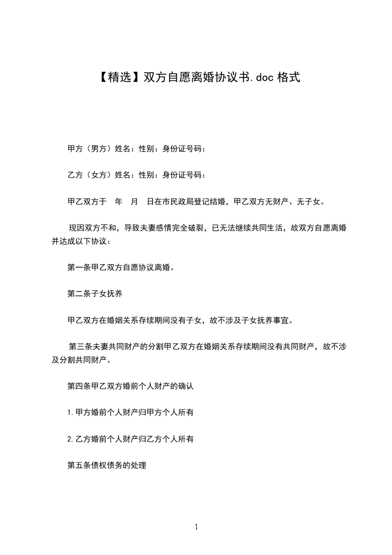 第一条甲乙双方自愿协议离婚。