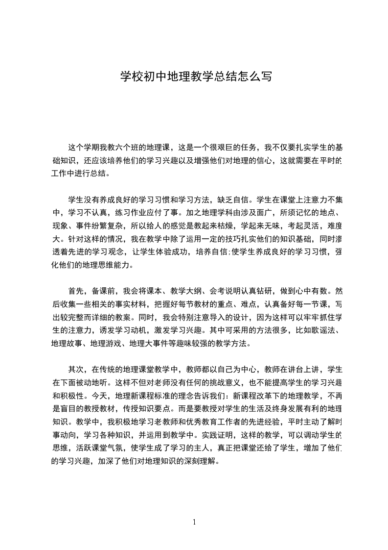 这个学期我教六个班的地理课,这是一个很艰巨的任务,我不仅要扎实学生的基础知识,还应该培养他们的学习兴趣以及增强他们对地理的信心,这就需要在平时的工作中进行总结。