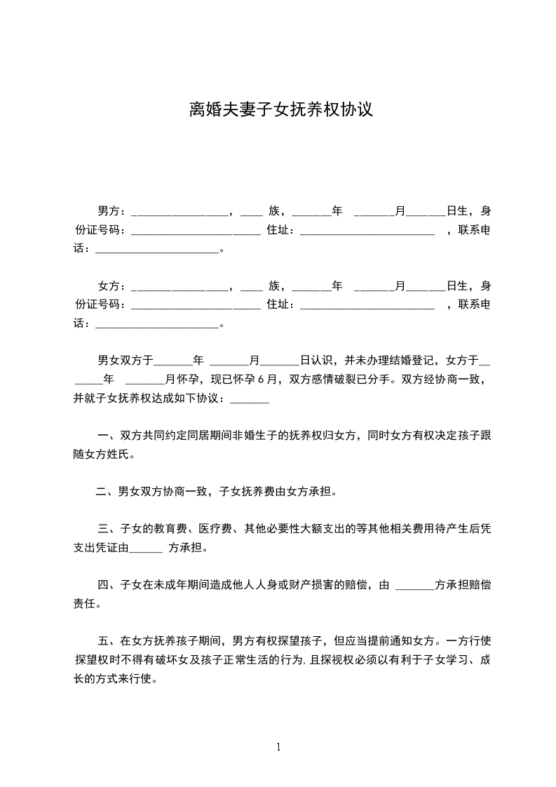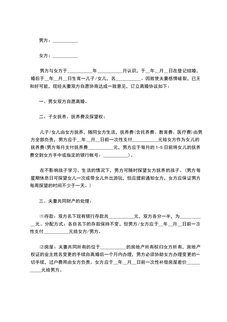 四、如遇其它未尽事宜或应时事宜,按照一切有利于孩子的原则,互谅互让,协商解决。