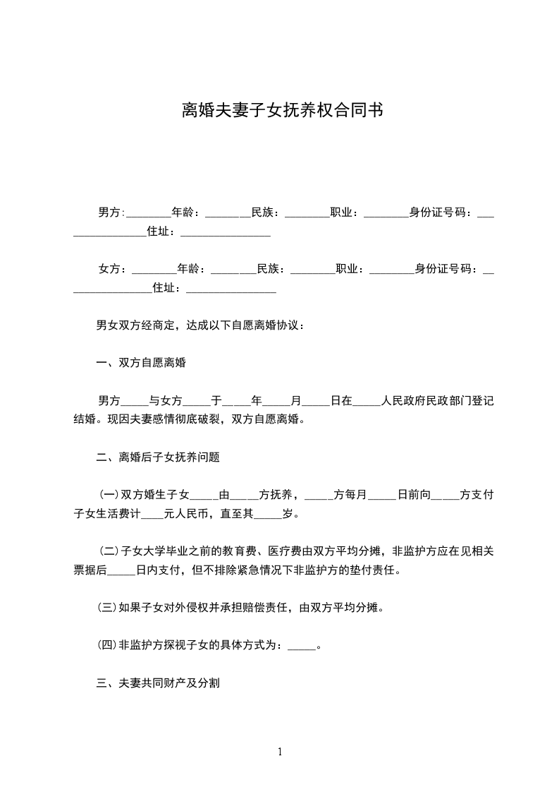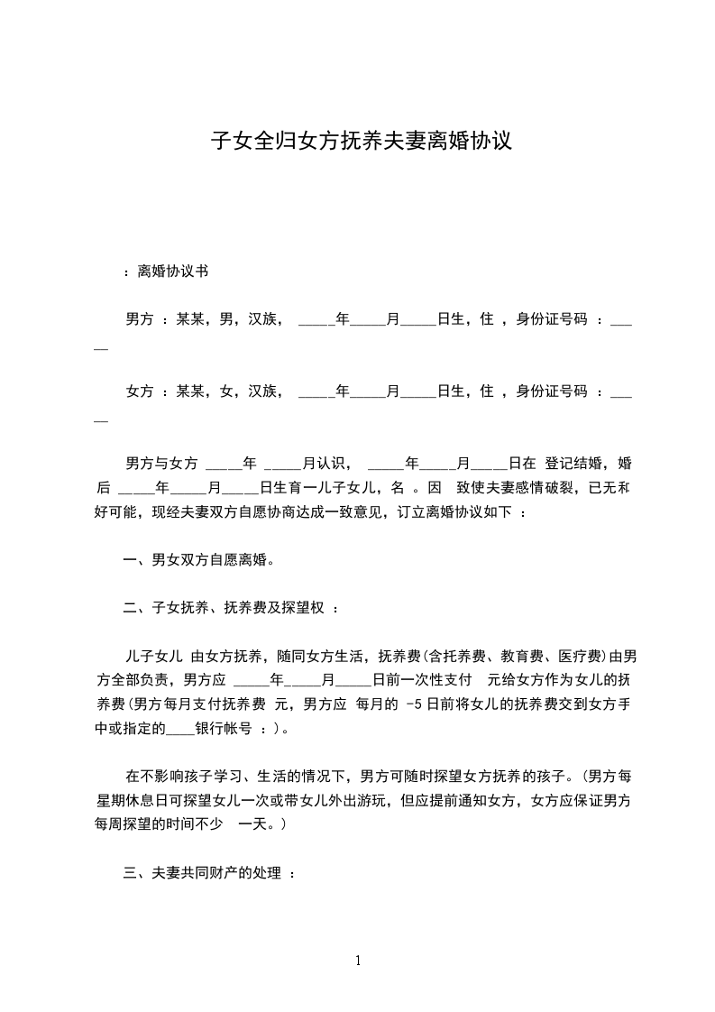甲乙双方在平等、自愿的基础上,经过充分的协商,现就双方离婚后子女抚养权等相关事宜达成协议如下: