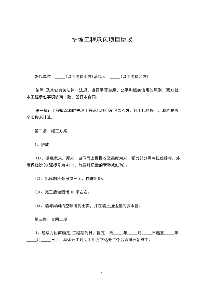 1、工程名称:xxx项目护坡工程(以下简称本工程)。