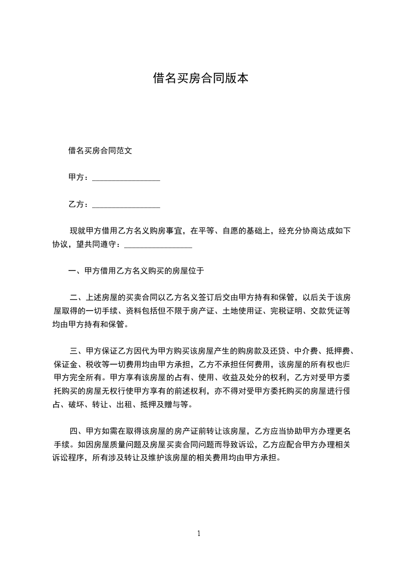 第一条甲方以乙方名义为甲方购买了______市二手房一套,房地产位于_________________,房屋面积______平米。乙方同意,购房合同由甲方持有和保管。