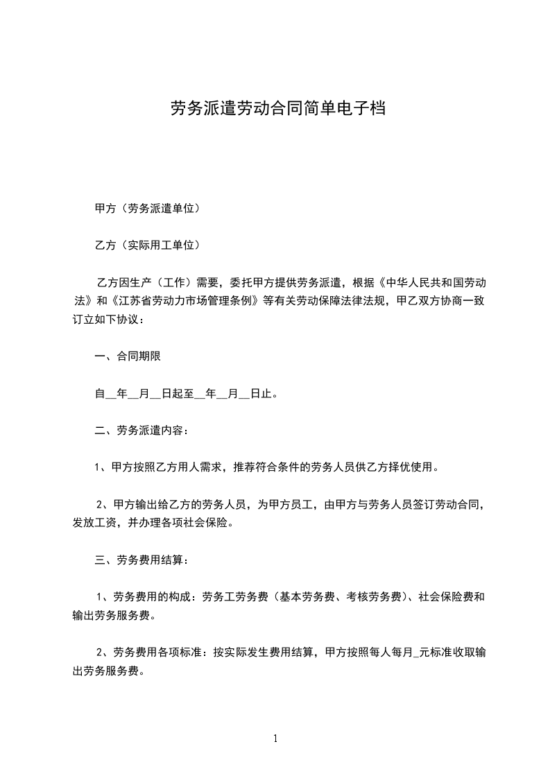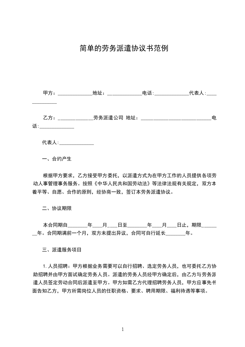 乙方:______________劳务派遣公司 地址:____________________________电话:______________