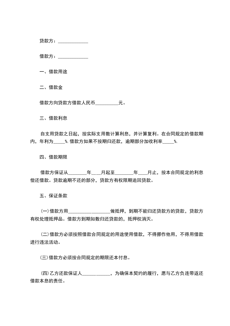 1、甲方应于________年________月________日前一次性提供给乙方合同约定的借款数额。