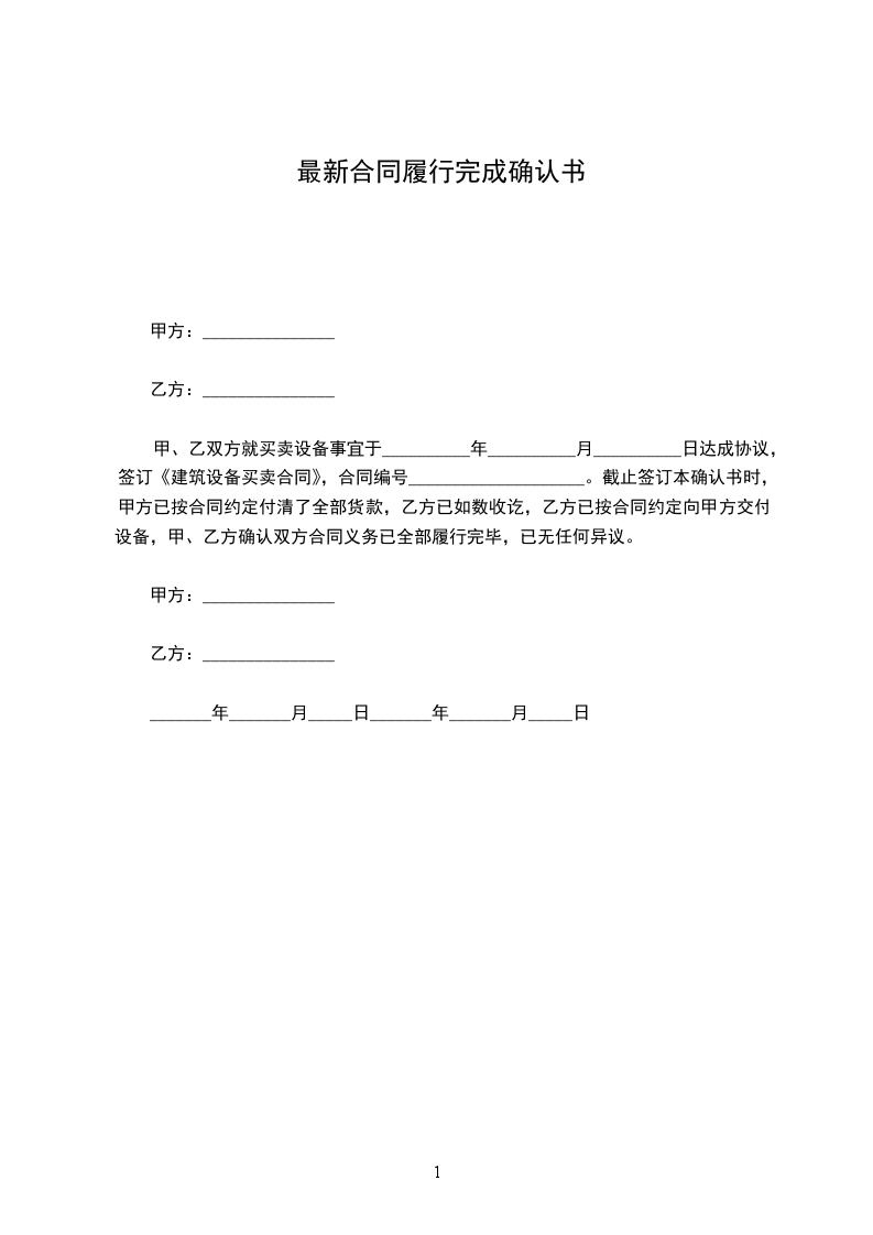甲、乙双方就买卖房屋事宜于________年________月________日达成协议合同,签订《房屋买卖协议》。截止签订本确认书时,甲方已按合同约定向乙方办理完结房屋产权证、土地使用证等过户交割手续;乙方已按合同约定向甲方支付清全部房款,金额共计_______________元(大写:_______________整),甲方已如数收讫;甲、乙双方确认双方合同协议义务已全部履行完毕,已无任何异议,双方本着友好的态度特签订本确认书。