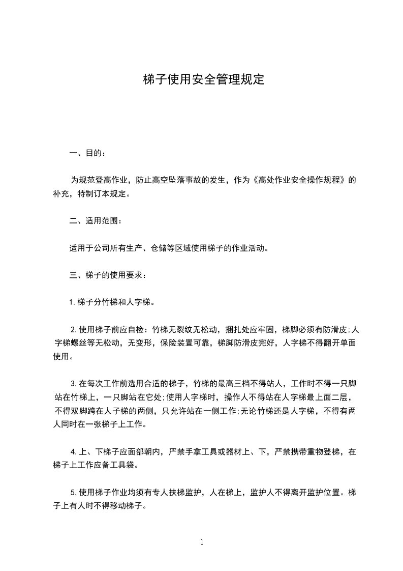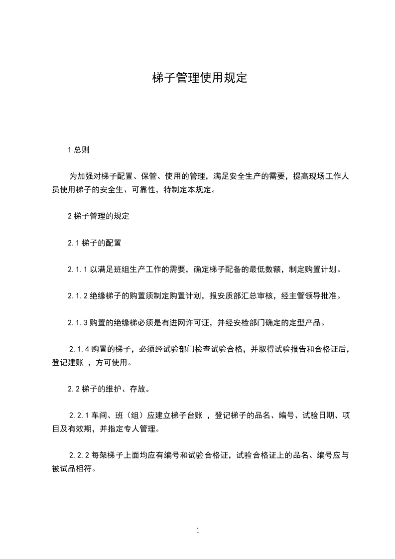 为加强对梯子配置、保管、使用的管理,满足安全生产的需要,提高现场工作人员使用梯子的安全生、可靠性,特制定本规定。