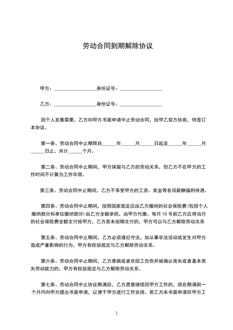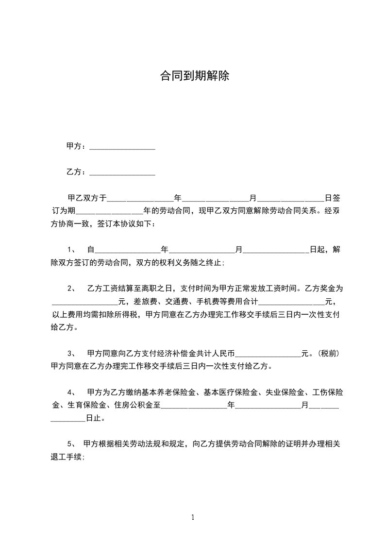 1、原《_____________》【此处填写甲乙双方之前签订的合同/协议名称】自______年______月______日解除,自解除之日起,原合同/协议中约定的双方权利义务终止;
