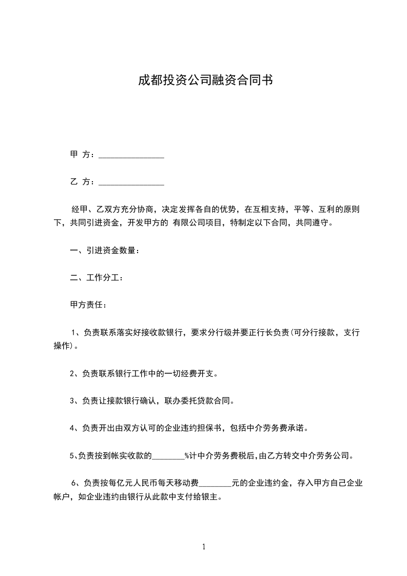 1、双方本着友好、协商的精神,共同努力做好引资前的各项工作,确保融资合同顺利操作。