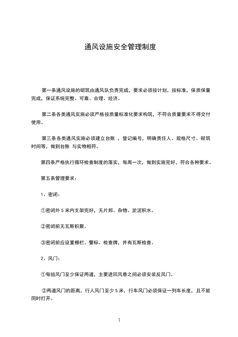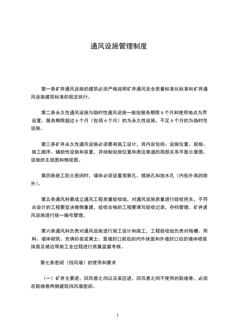 第一条通风设施的砌筑由通风队负责完成,要求必须按计划,按标准,保质保量完成,保证系统完整、可靠、合理、经济。
