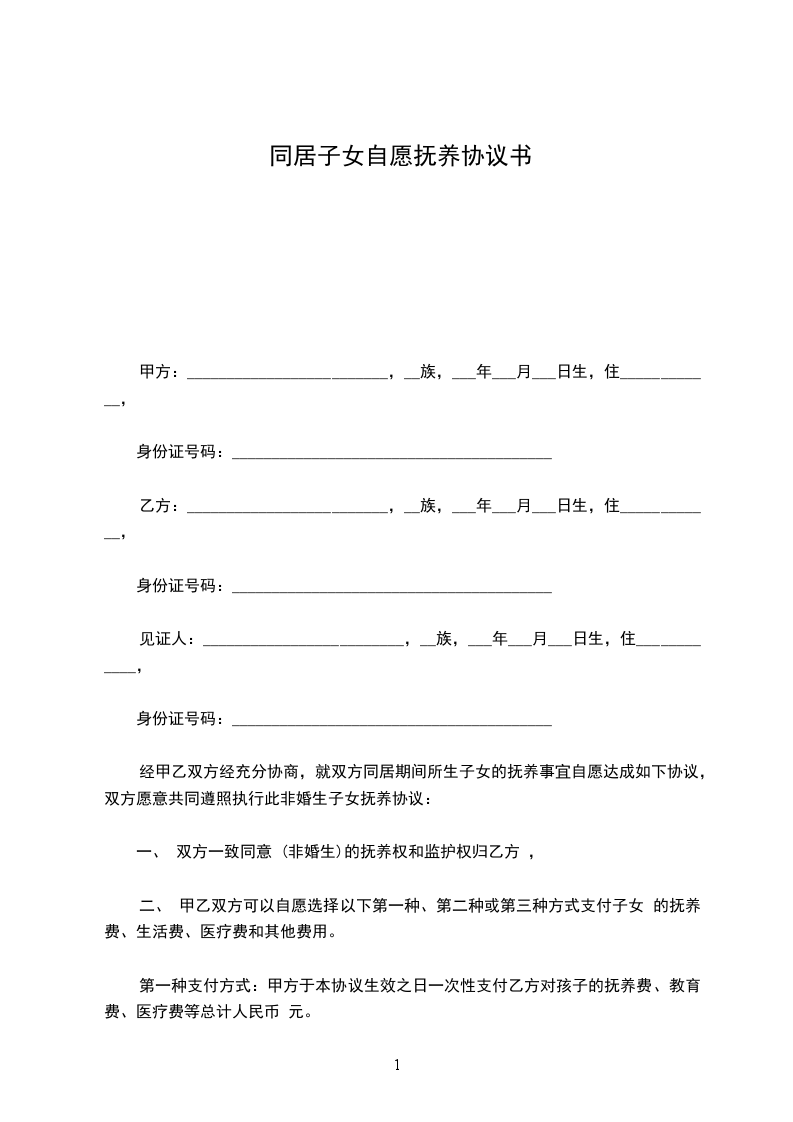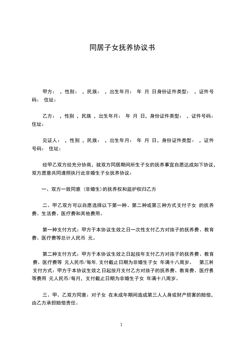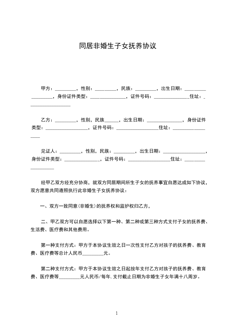 甲方与乙方经充分协商,就双方所生女儿________的抚养事宜自愿达成如下协议,以共同遵照执行此非婚生子女抚养协议: