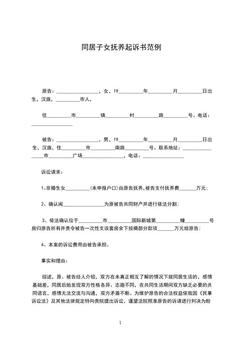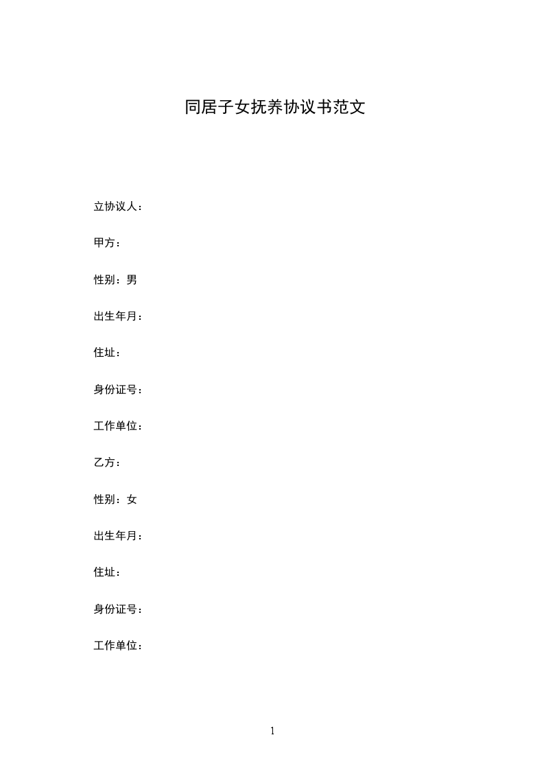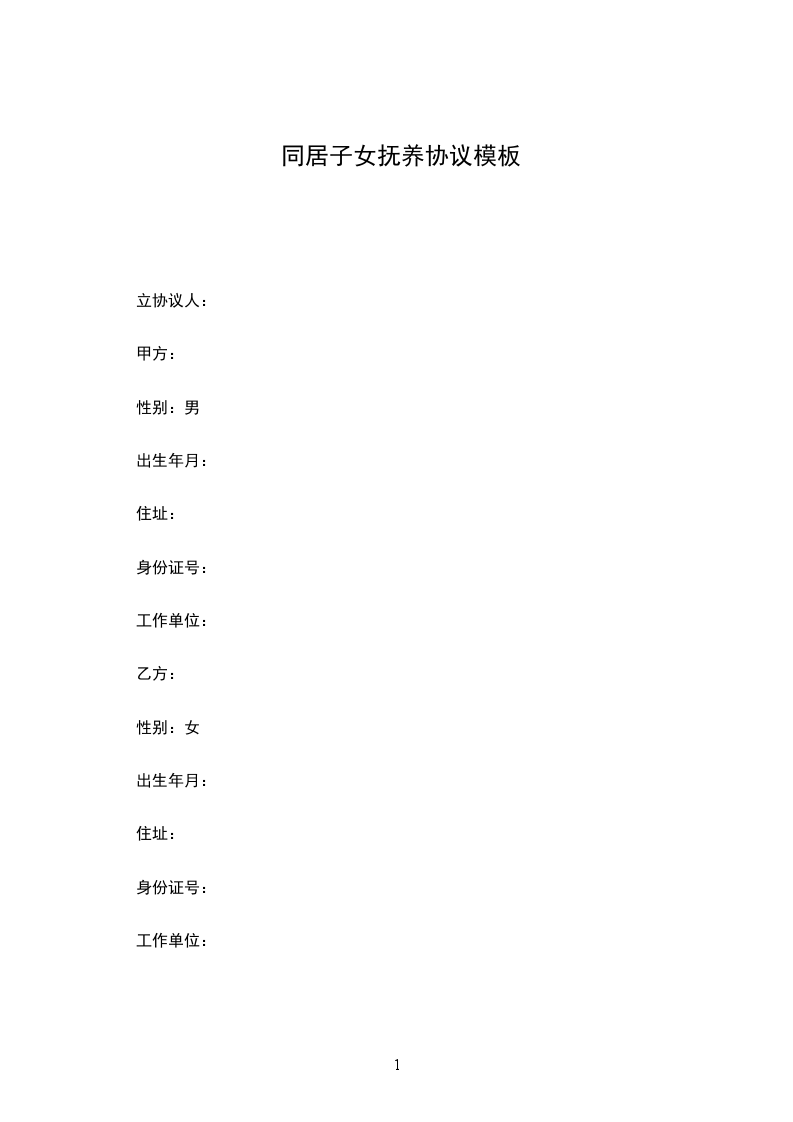 女方:_________________,汉族,_______年_______月_______日出生,现住:_________________,身份证号:_________________;
