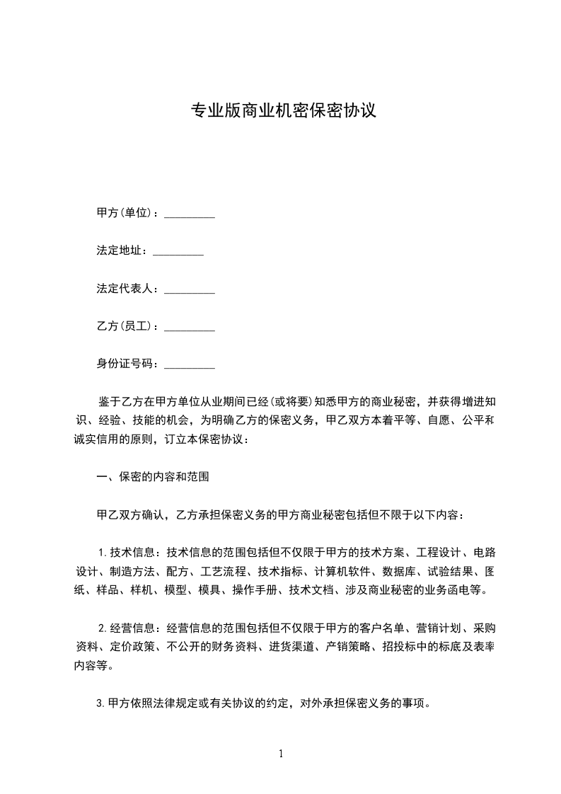 鉴于乙方在甲方单位从业期间已经(或将要)知悉甲方的商业秘密,并获得增进知识、经验、技能的机会,为明确乙方的保密义务,甲乙双方本着平等、自愿、公平和诚实信用的原则,订立本保密协议: