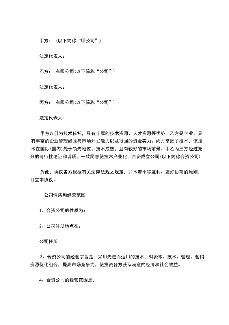 为加强各方合作,甲乙双方经过充分协商,就合资成立有限公司相关事宜达成如下协议: