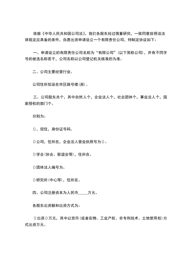 一、甲乙双方作为发起人,共同筹资设立__________县_____________有限公司,公司形式为有限责任公司。