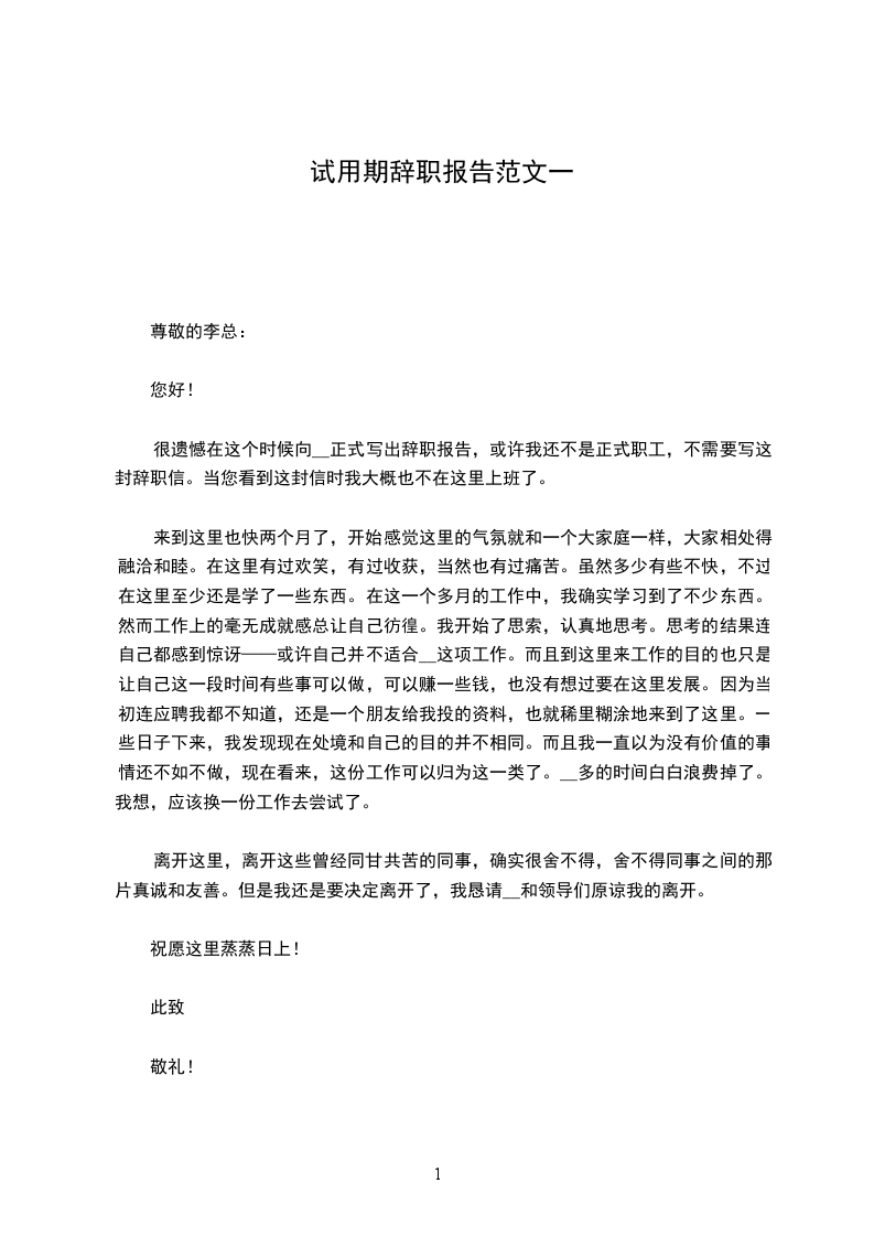 很遗憾在这个时候向__正式写出辞职报告,或许我还不是正式职工,不需要写这封辞职信。当您看到这封信时我大概也不在这里上班了。
