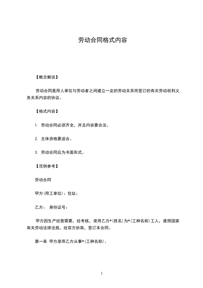 常用的劳动合同样本内容