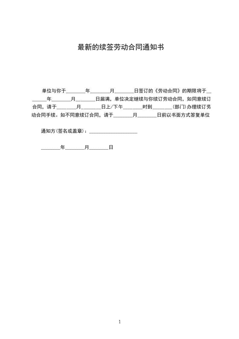 最新的劳动合同续约通知范文