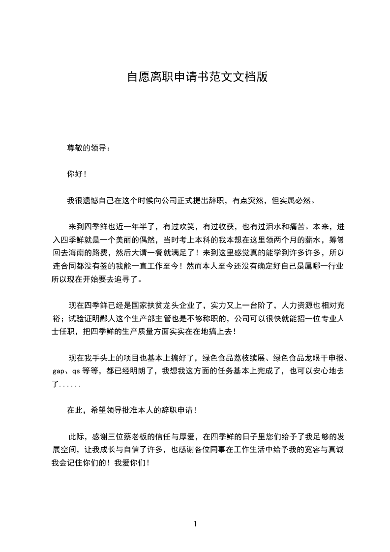 此际,感谢三位蔡老板的信任与厚爱,在四季鲜的日子里您们给予了我足够的发展空间,让我成长与自信了许多,也感谢各位同事在工作生活中给予我的宽容与真诚,我会记住你们的!我爱你们!