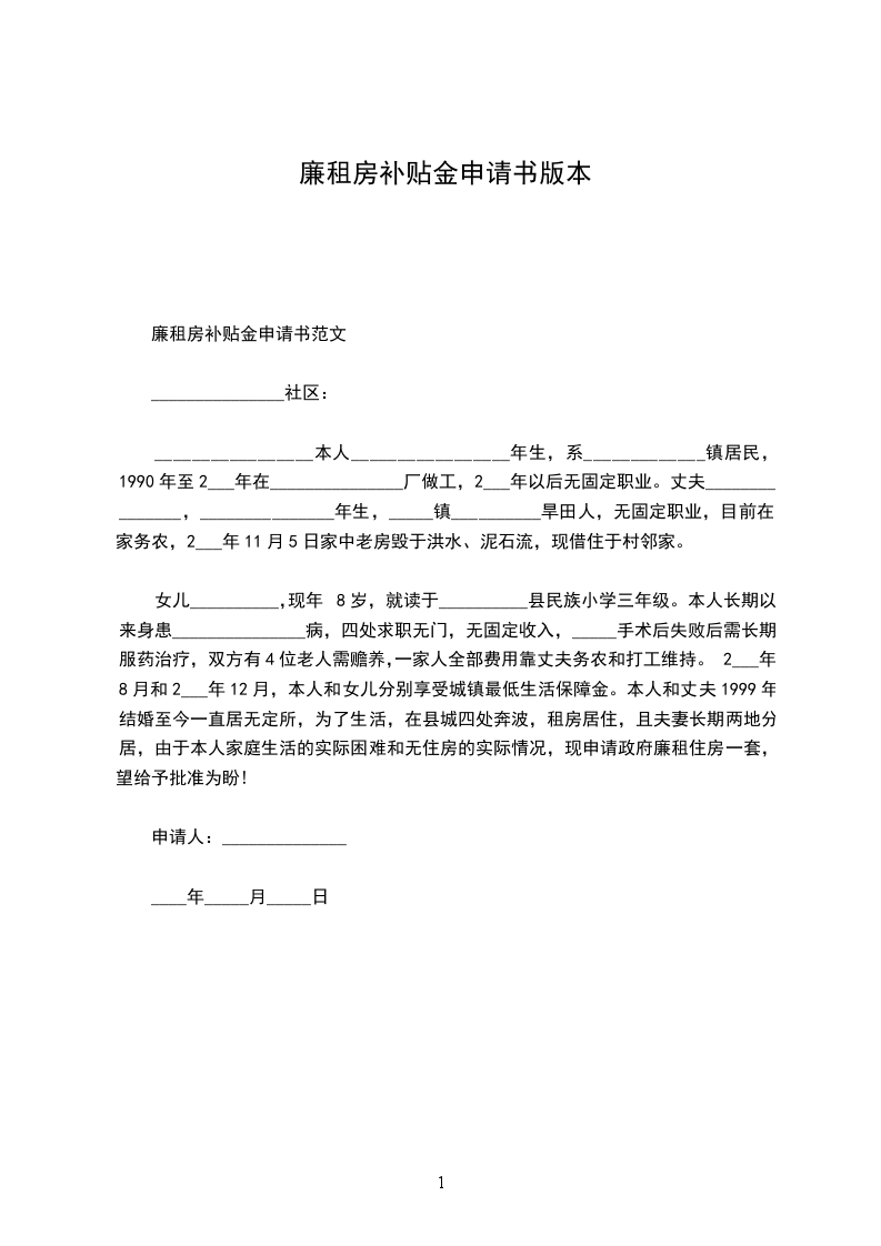 第三条乙方家庭原人均居住面积_________平方米,现按安置人均居住面积达到_________平方米标准。甲方每月补贴乙方租金人民币_________元。由乙方家庭自行租赁房屋,以解决居住困难。