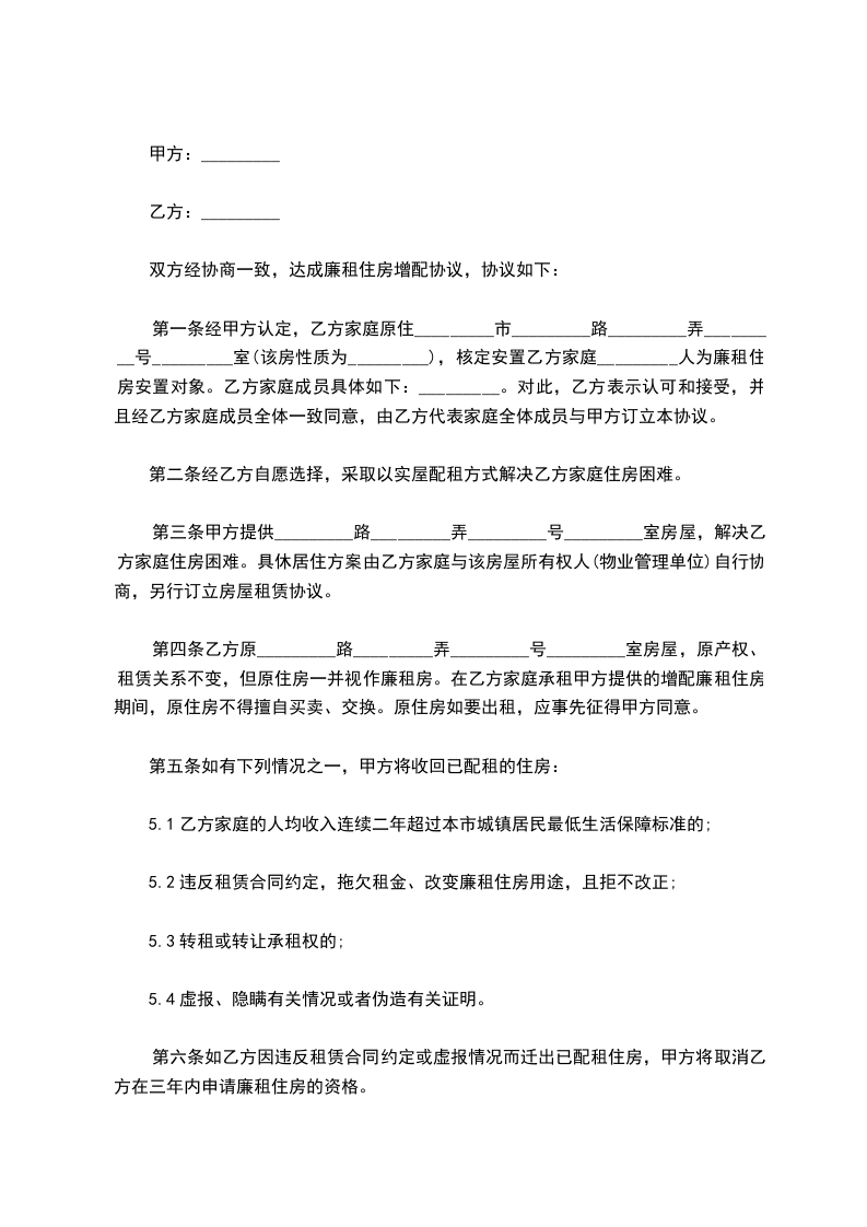 第一条经甲方认定,乙方家庭原住本市_________(该房性质为_________),核定安置乙方家庭_____人为廉租住房安置对象