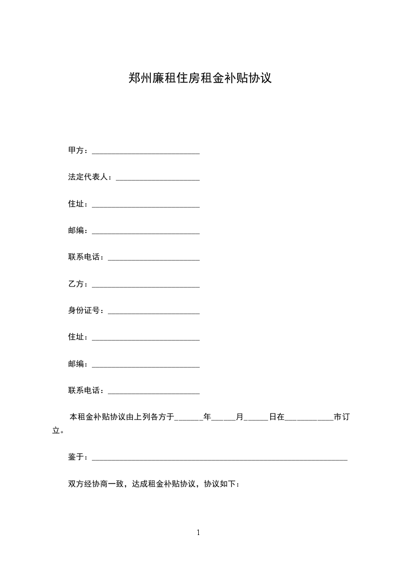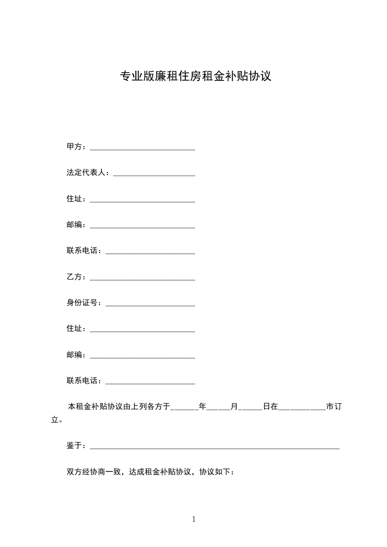 本租金补贴协议由上列各方于_______年______月______日在____________市订立。
