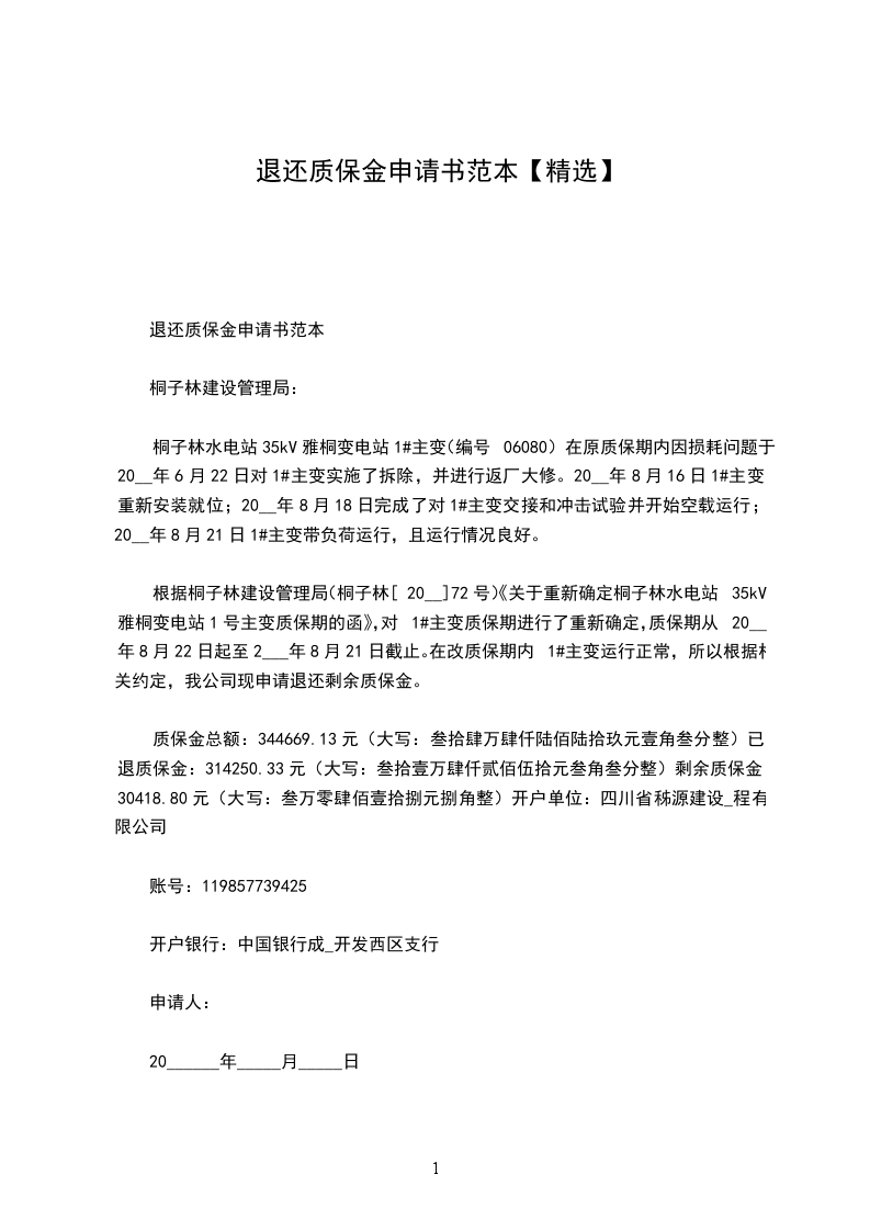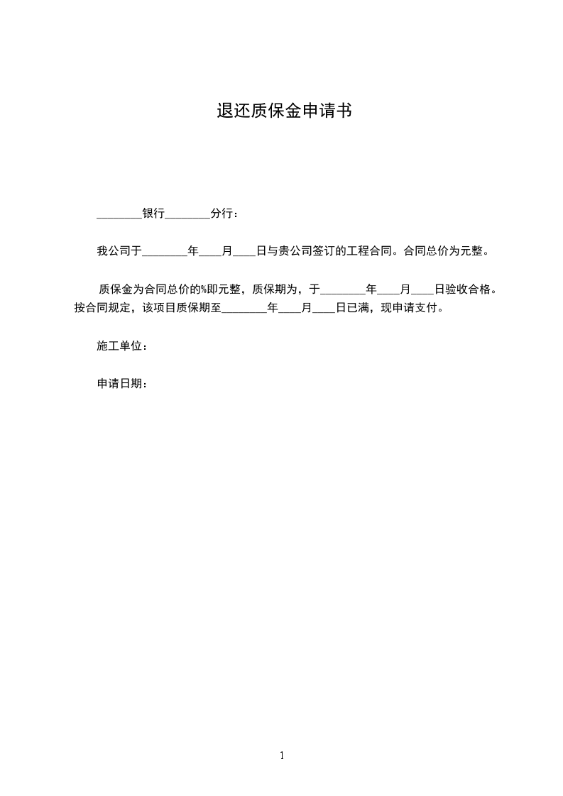 质保金为合同总价的_____%即元整,质保期为,于________年____月____日验收合格。按合同规定,该项目质保期至________年____月____日已满,现申请支付。