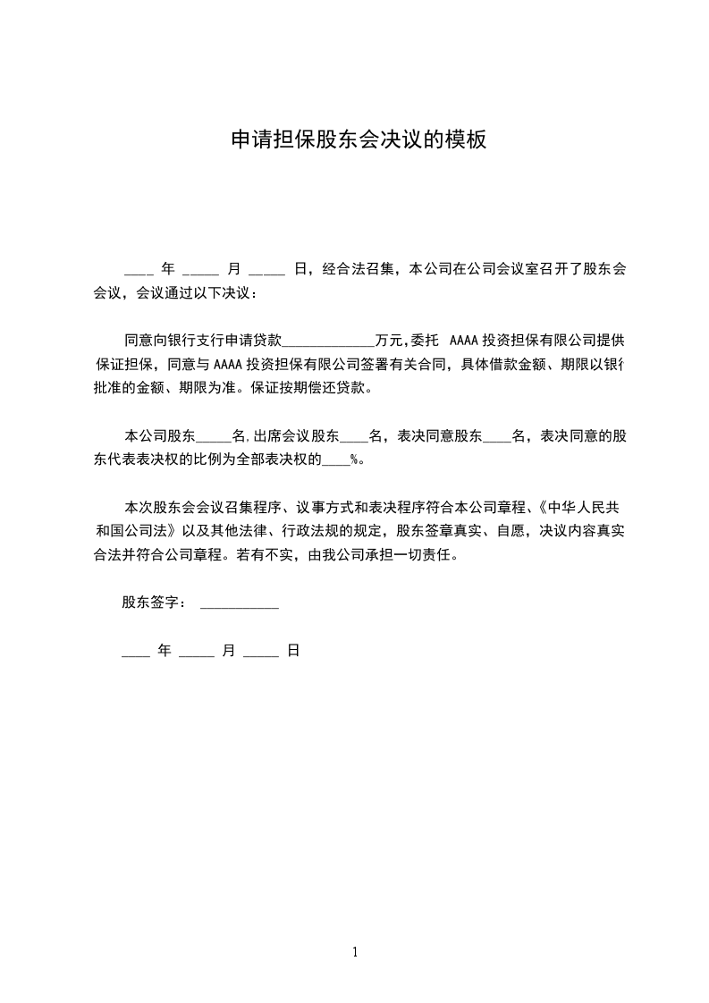 同意向银行支行申请贷款_____________万元,委托AAAA投资担保有限公司提供保证担保,同意与AAAA投资担保有限公司签署有关合同,具体借款金额、期限以银行批准的金额、期限为准。保证按期偿还贷款。