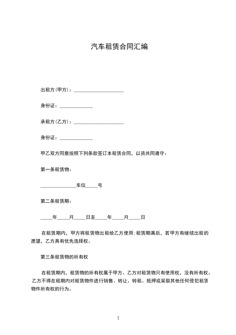 1、甲方将地下层号车位租予乙方使用。