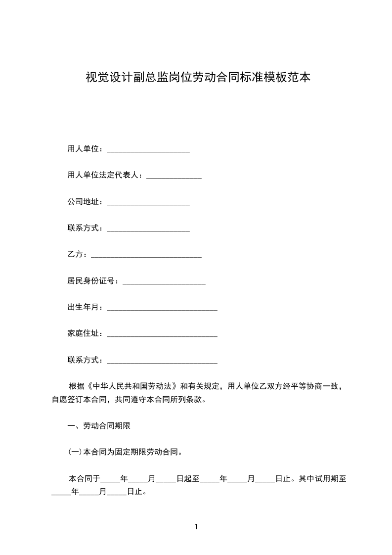 (一)本合同为固定期限劳动合同。