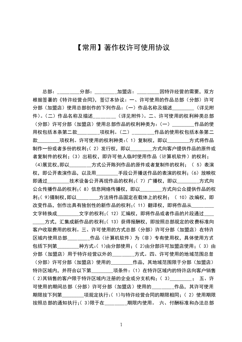 甲方授权乙方得不限次数地于本契约期限内在乙方指定之场所:__________(如附件)内公开演出甲方所管理之一切音乐著作(下称契约标的)。